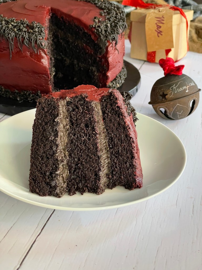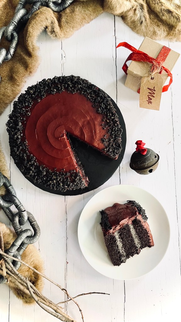 - Remove the tin and lining baking parchment paper and allow the cake to cool fully before covering with the ganache layer