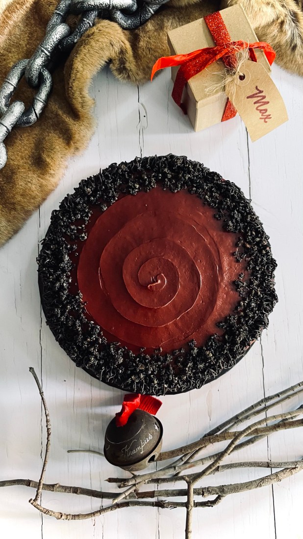 - Remove the tin and lining baking parchment paper and allow the cake to cool fully before covering with the ganache layer