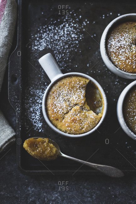 3. Bake the puddings for about 30 minutes, until a tester inserted into the centre of a pudding comes out almost clean