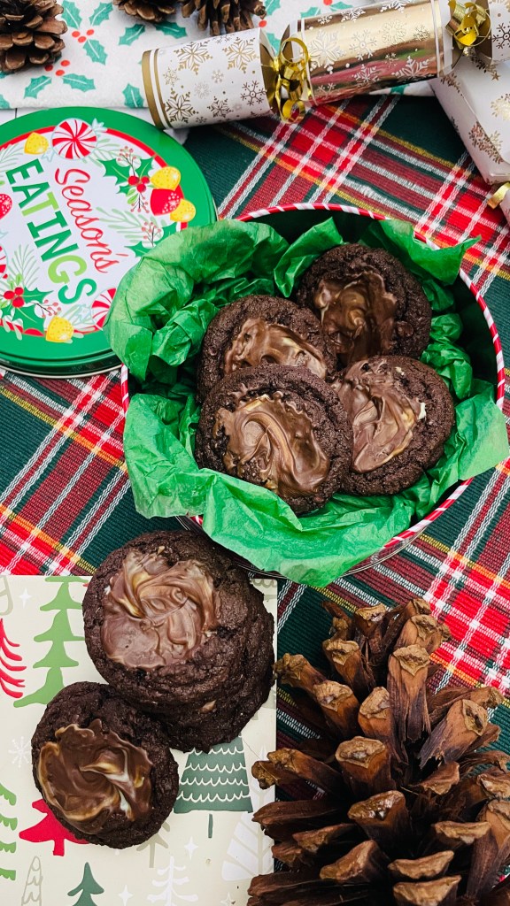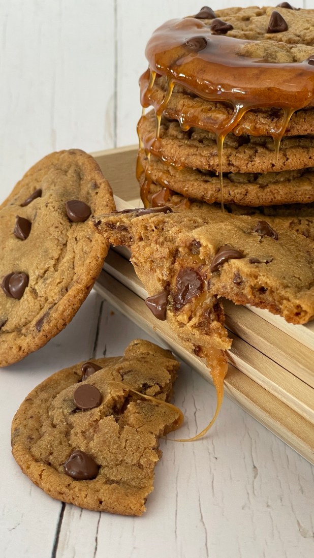 *The caramel centres will become firmer as they cool. If you want a softer, gooier centre, microwave the cookie for about 15 seconds,