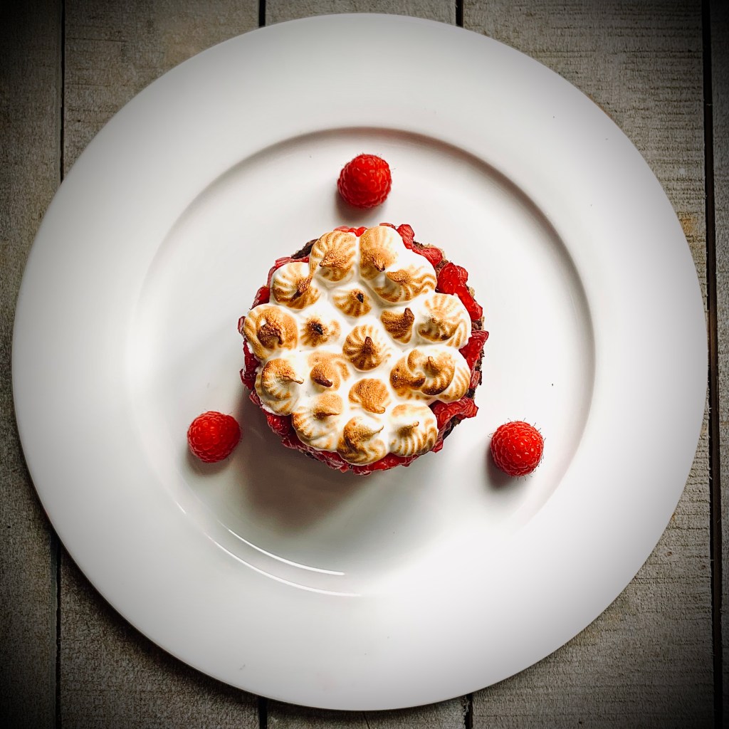 Top with peaks of meringue piped in desired arrangement and torch to finish until toasted and browned