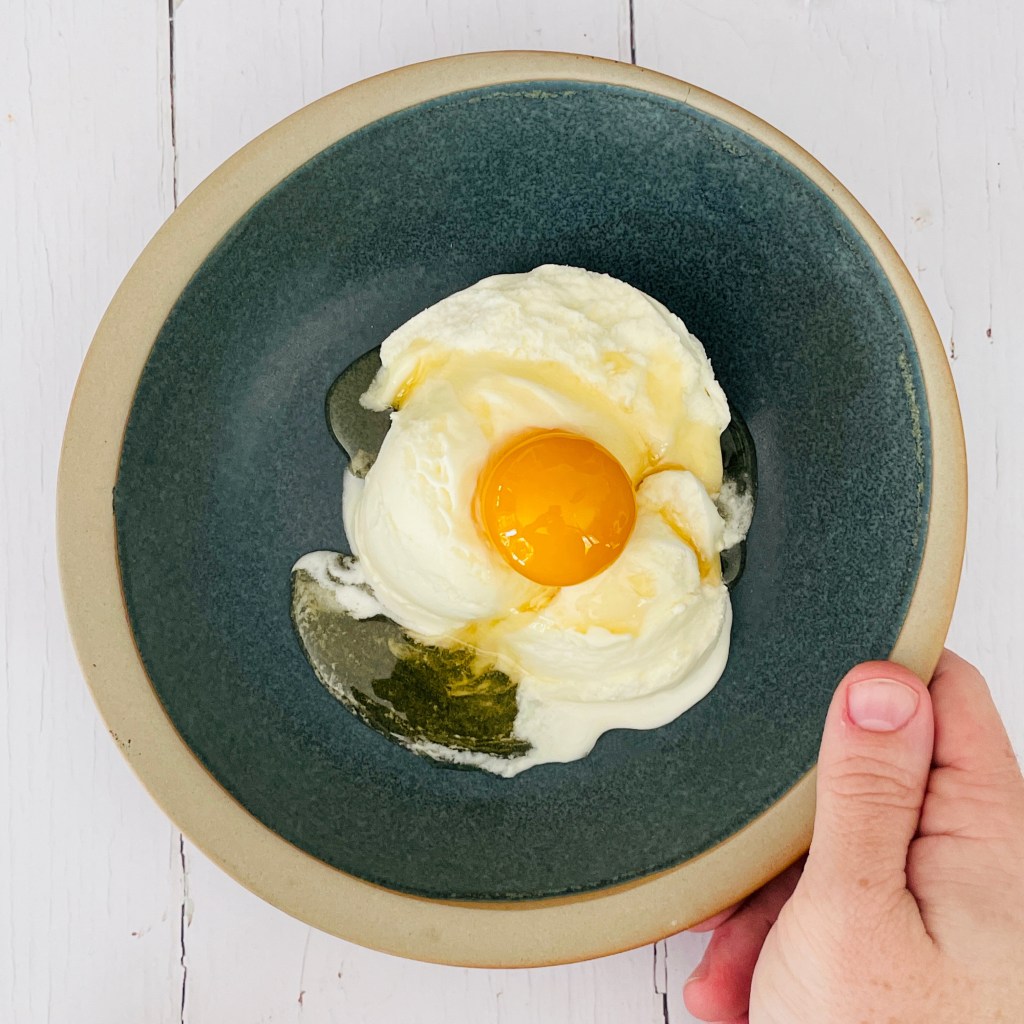 1. Place scoop of ice cream into a serving bowl. Using back of small spoon, make small indentation in centre of each scoop. Using small spoon, transfer 1 yolk to each indentation. Drizzle additional caramel over yolks and ice cream as desired