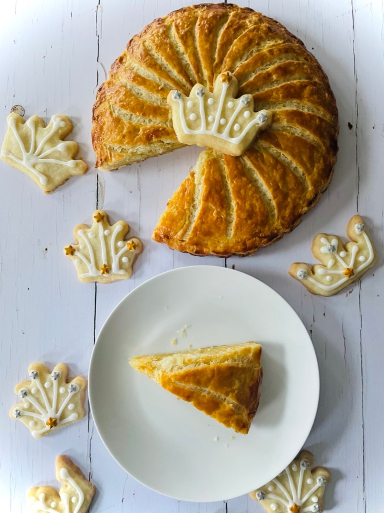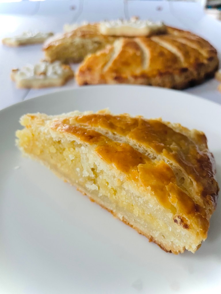 12. Brush the top of the galette with the finishing egg mixture until fully covered and golden. Avoid brushing the side of the galette