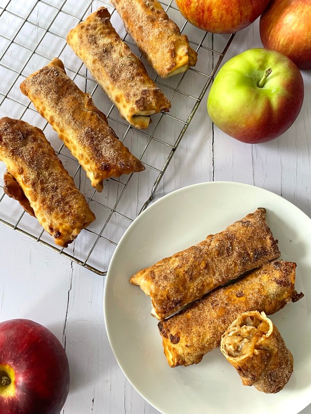 - Combine the sliced apples, both zests, both juices, vanilla extract, spices and salt in a large bowl, and stir to combine. Drizzle ½ cup cooled caramel sauce over the top and stir again. Scrape the apples and all their juices into your prepared skillet
