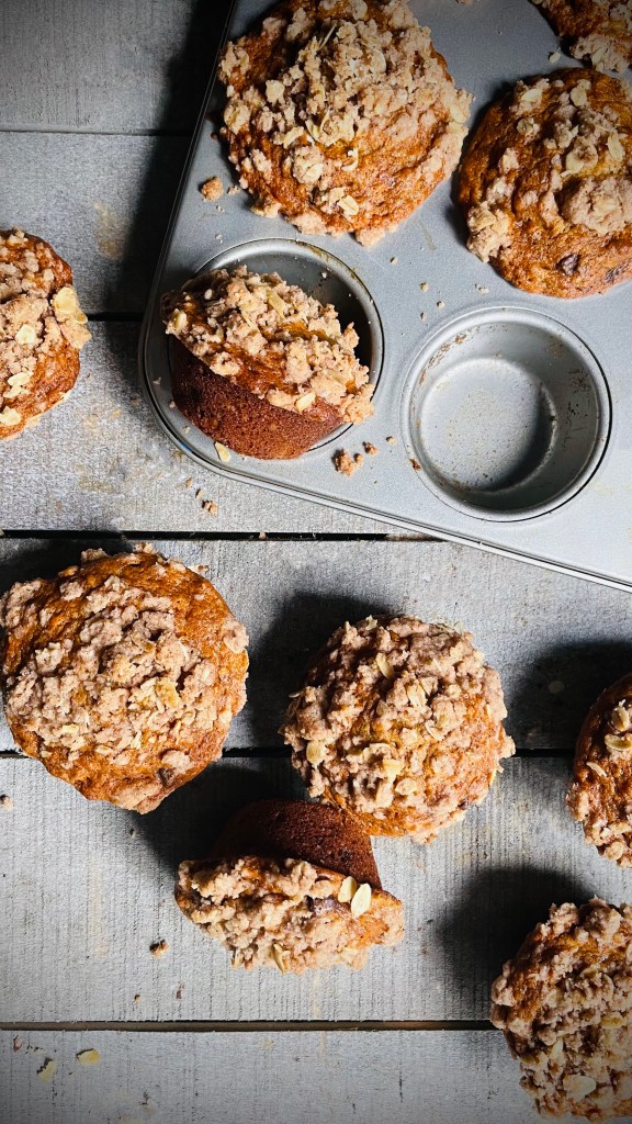 Spoon batter into prepared muffin cups, about 2/3 full. Sprinkle the streusel topping over muffins