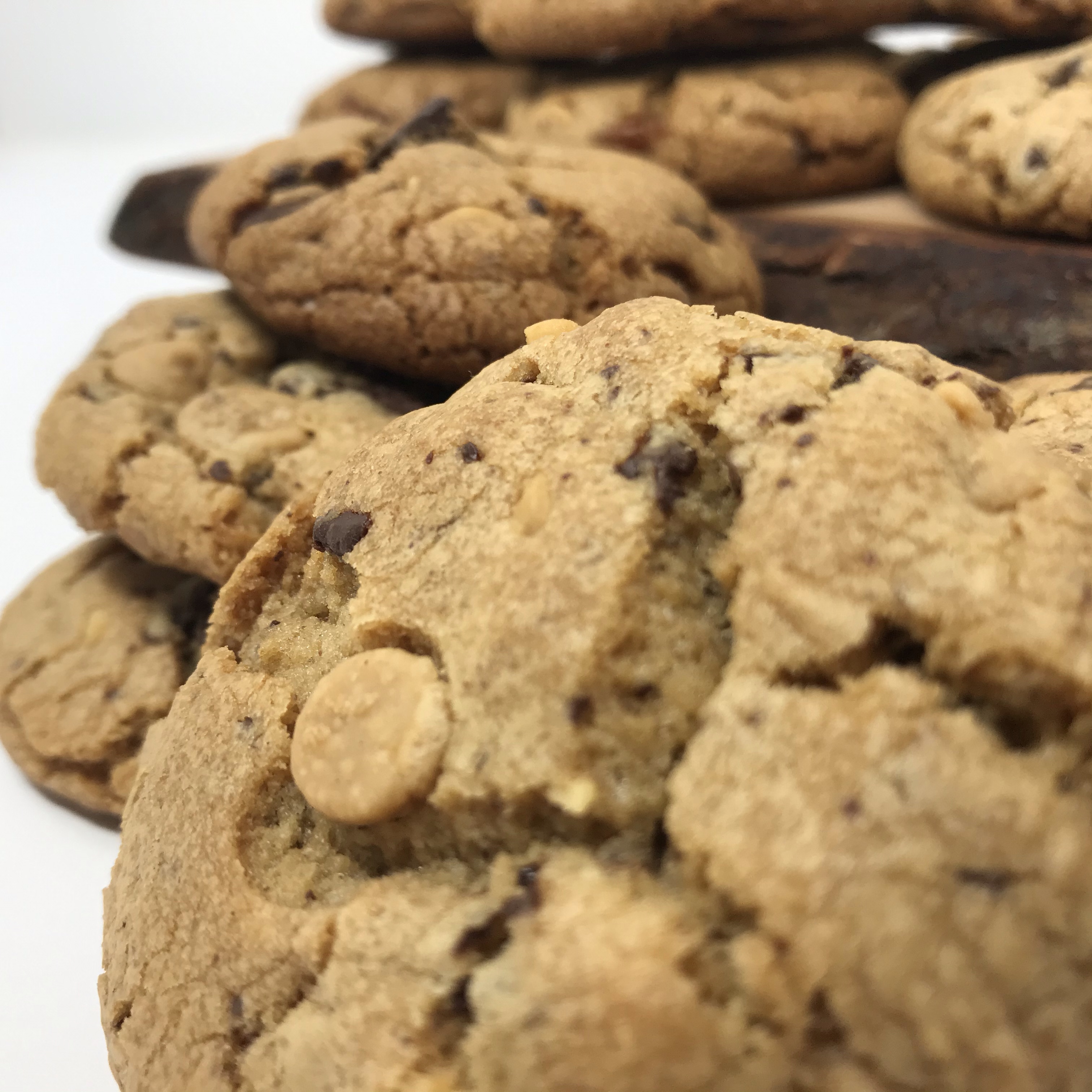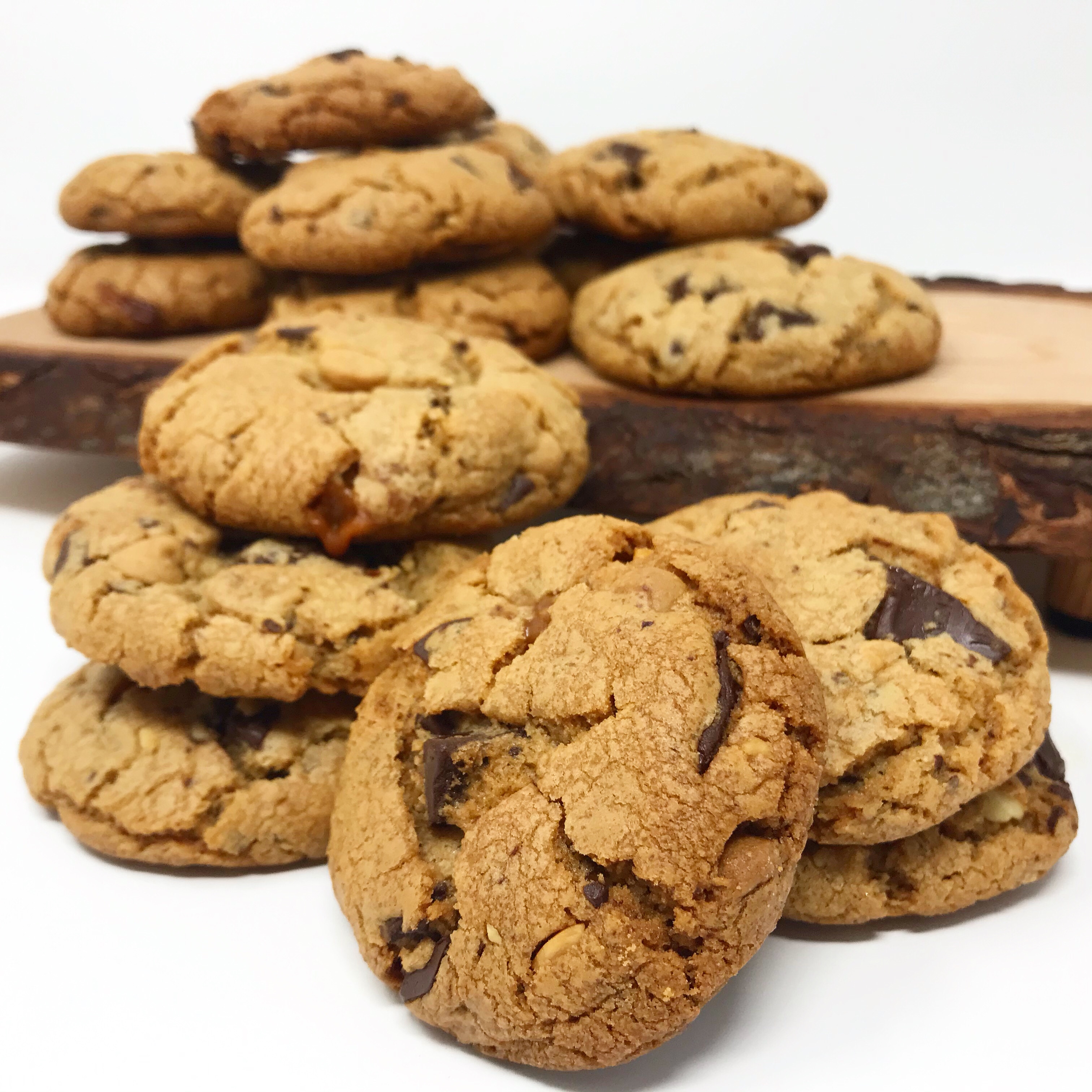 Fold in the chocolate chunks, the caramel pieces and peanut butter chips. Mix until thoroughly mixed through the dough (I find here it easier to fold by hand rather than using a spatula or spoon. It just depends on what you’re comfortable with)