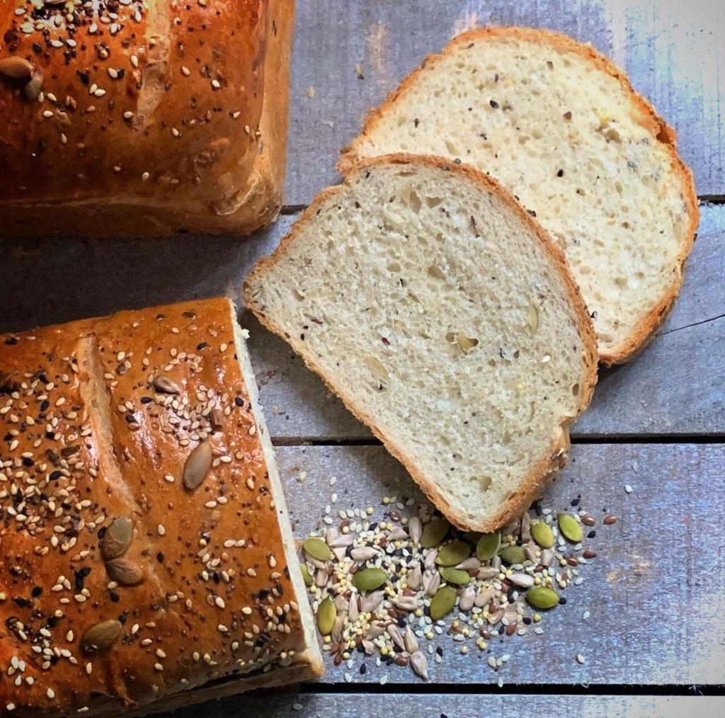 9. Let your baked loaf cool completely before slicing. The structure of a warm loaf hasn’t set, or fixed, yet and as such if you were to slice it you will squash and unduly tear the slices.