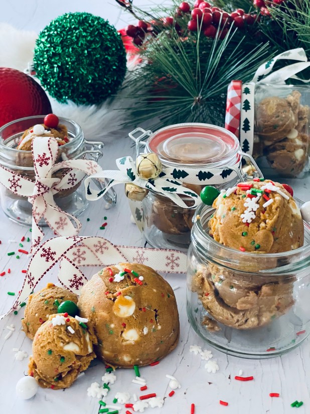 If you’re not gifting this edible cookie dough (how could you not? It’s the Season of Giving!) a fantastic way of using this delicious treat are these adorable Edible Cookie Dough Christmas Trees. Fun and easy to make, you can also get some little helping hands involved too!