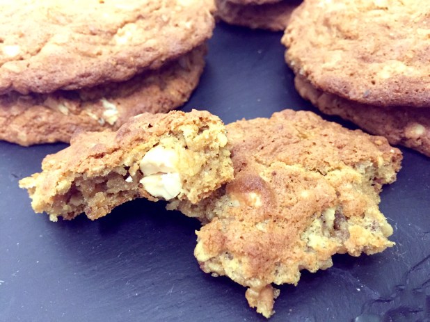 I call them cookies as opposed to biscuits as a personal preference. For me biscuits represent something more uniform and structured- exact bites of crumbly sweetness. The cookie on the other hand is something more rustic. A ballsier rebel of the Baking World conforming less to the rules of appearence and plunging headfirst into the realm of flavours. Cookies don’t care how you think they look- they prefer to let their flavours make an impression. These cookies are not your small, danity bite size treats. They are large handfuls of tastiness- not meant to be nibbled on but greedily chomped at. Partnered with a glass of cold milk your satifaction is sure to be sealed with dripping, grinning milky moustache.