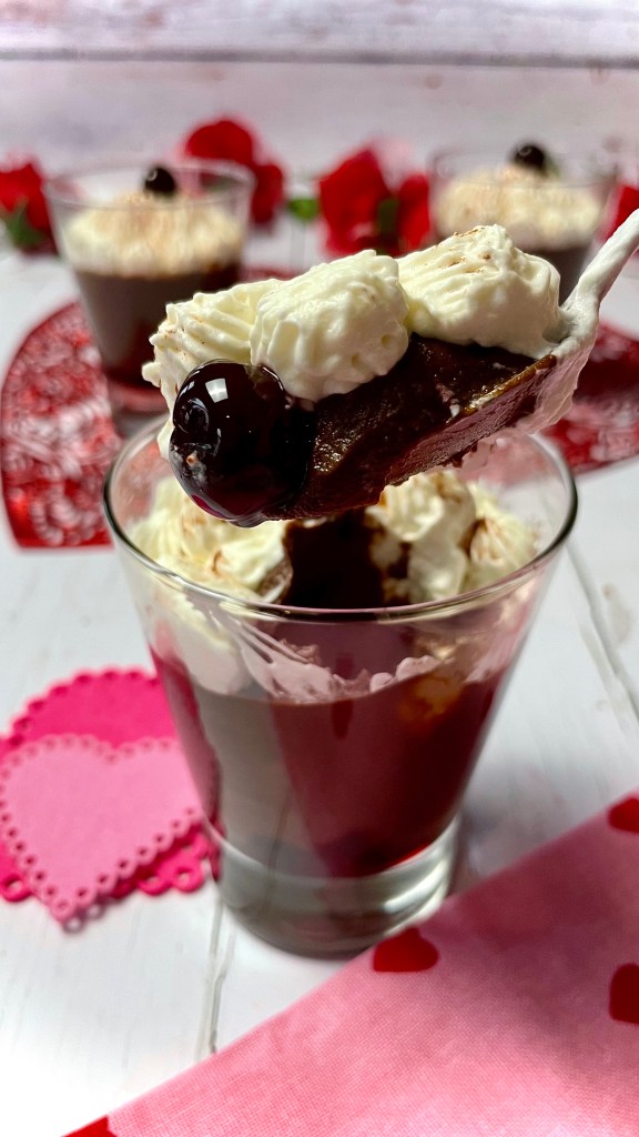 Divide the Amarena cherries between 4 small bowls, ramekins or glasses and portion each with some of the chocolate budino mixture (in the region of 1/2 cup each). Place in the refrigerator to set for at least 90 minutes